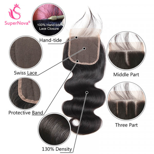 Brand Name SuperNova Human Hair Type Malaysian Hair Hair Texture Body Wave Bundles With Closure Color Hair, Natural Color; Lace, Transparent Color Length Hair, 8-32 inch; Closure&Frontal, 14-20 inch Suitable Dying Colors All Colors, Except #613 Items per Package 2 pcs Weft & 1 pc Closure Hair Quality 100% Unprocessed Virgin Human Hair Features SuperNova Hair Offers 100% Human Hair Which Cut From Donors, Cuticle Holding, No Lice, No Grey Hair, No Shedding , No Tangle, No Smell, Thick & Healthy, Long Lasting. Processing time Usually Ship The Order Within 24 Hours Except for Weekends and Holidays Delivery Time Normal by FedEx, 2-5 Working Days Arrive After Shipping Return Policy 15 Days Return Guarantee