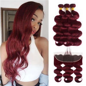 99J Burgundy 13*4 Lace Frontal Closure With Bundles Brazilian Body Wave