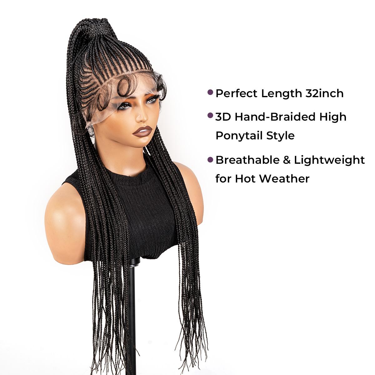- Length & Style: This 32-inch braided wig is perfect for those who want a long, striking look. The high ponytail design adds volume and dimension, giving you a glamorous, full-bodied style that is both chic and practical.
