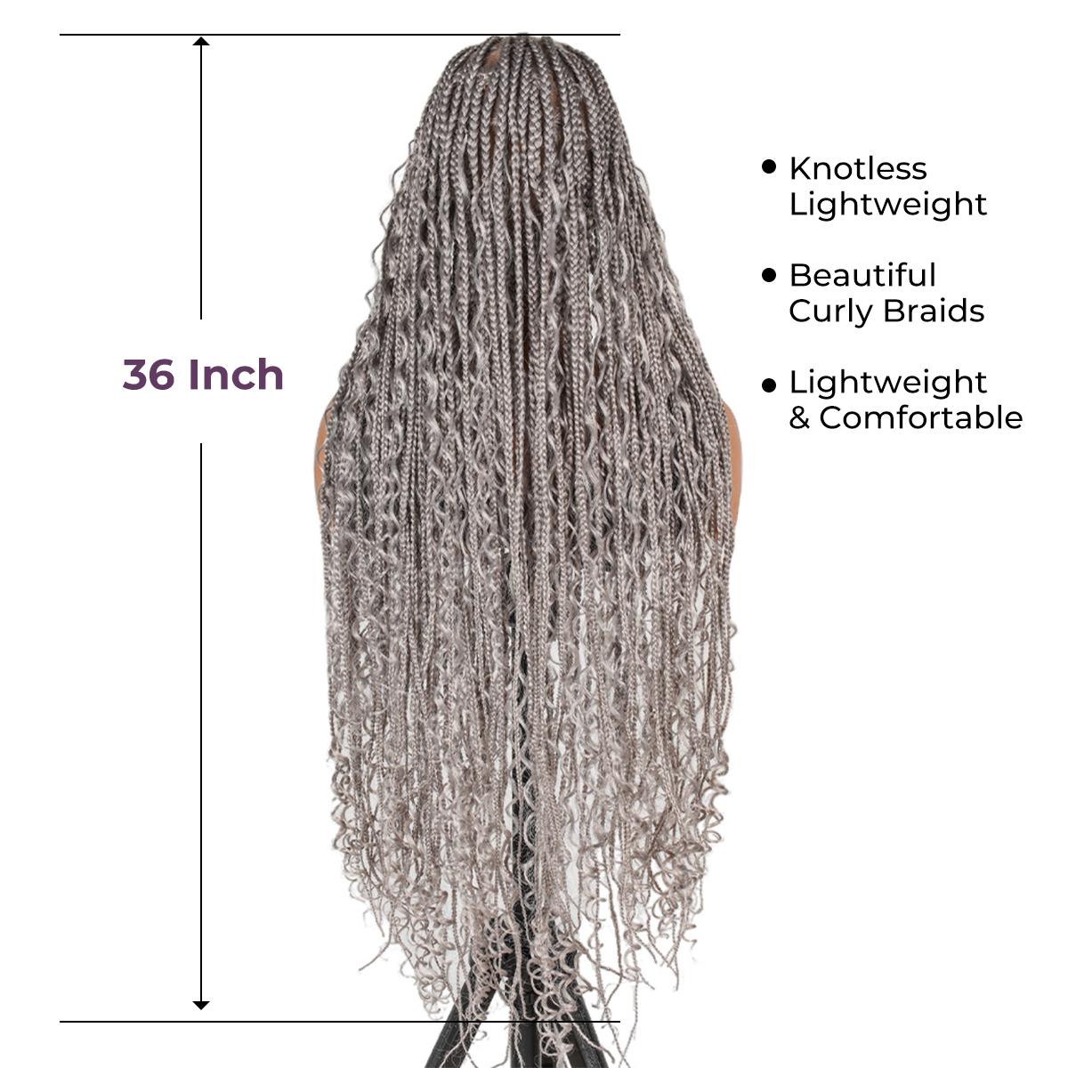 Material Soft Lace& Super Lightweight High-Quality Synthetic Fibers Natural Look Super Lightweight Knotless Lace Braided Wigs Type Full Lace Boho Braids Wig Length 36inch Versatile Dress It Up For Occasions Or Casually For Everyday Use. Easy to Wear & Go Only Few Minutes Needed New Fashion Knotless Braided Wigs For Black Women. Full Lace Full lace area, lace assures the softness and comfort of wearing With baby hair Natural baby hair creates a seamless transition Save Time and Money Get a perfect braided look under 15 mins 36inches knotless box braids design Stylish and Classic SuperNova 36" Full Lace Bohemian Box Braided Synthetic Wig – #Gray Glueless Lightweight Wavy Wig