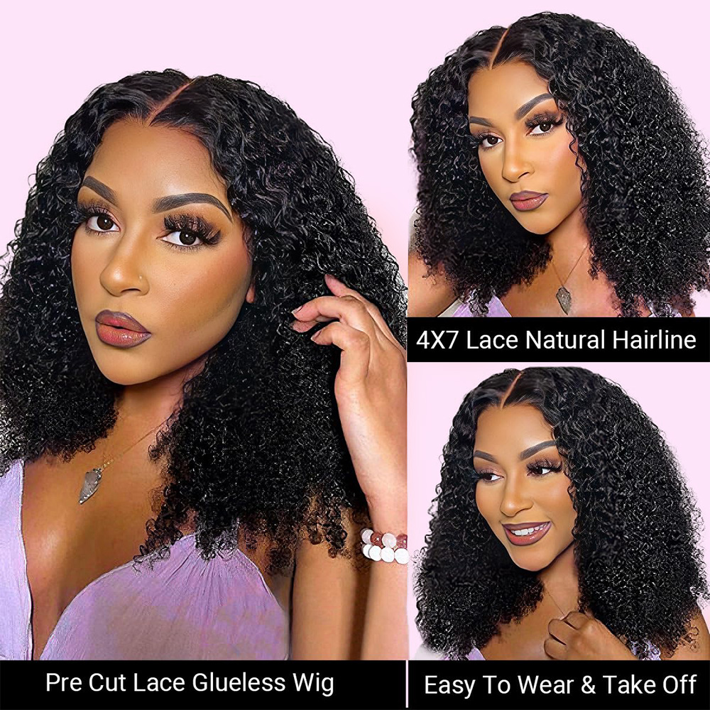 Key PointsGlueless Design – No adhesives needed for easy, damage-free wear.Pre-Plucked Natural Hairline – Effortlessly realistic appearance with baby hairs for seamless blending.Breathable & Lightweight – 4x7 lace cap ensures comfort for all-day use.Daily Quick Styling – Heat-friendly human hair for versatile, time-saving looks.Premium Quality – 100% human hair for durability and natural movement.